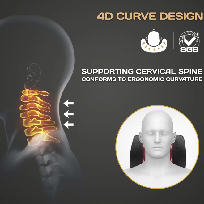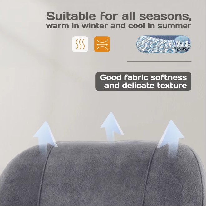 Feature: Suppoting cerbical spine, spine conforms to ergonomic curbature. Warm in winter and cool in summer.