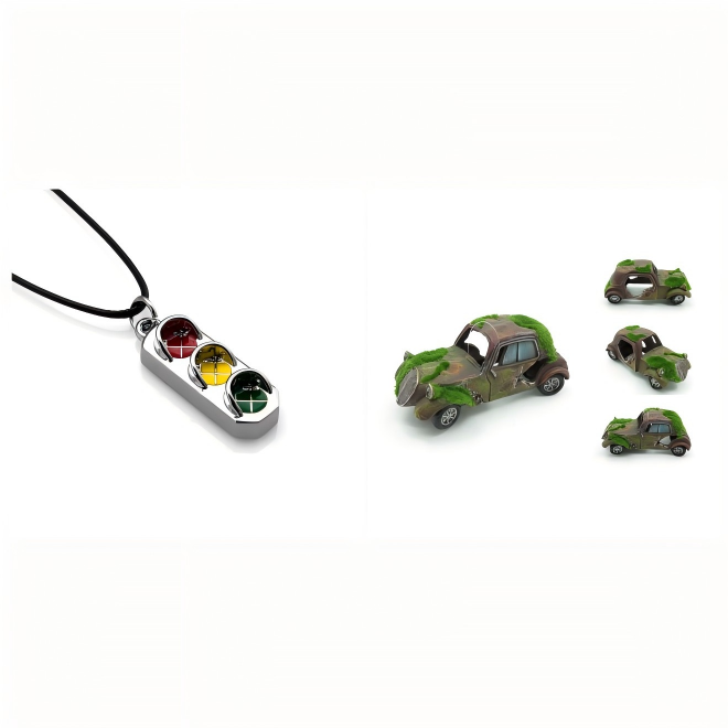 Wholesale of 12 Pcs Pendant Tag Car Traffic Light Keychain For Men and 20 Pcs Resin Damaged Car Shape Ornaments Putting On the Car Desk.